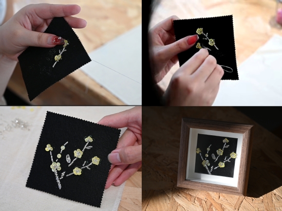 珠绣是厦门地区传承千年的一种传统手工刺绣技艺,被列入国家级非物质文化遗产,通常使用彩色丝线和各种珠饰展现出花鸟、山水等多样而精美的纹样。