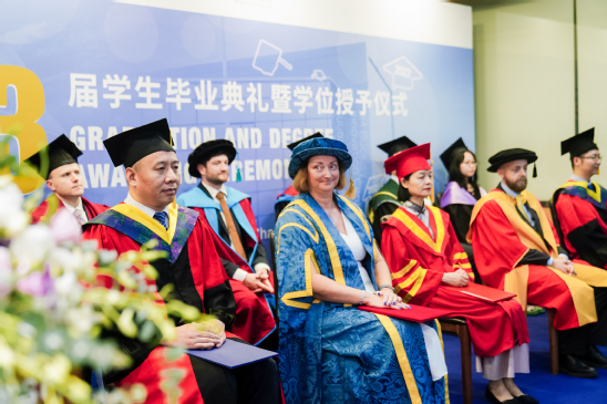 劳拉·毕夏普在致辞中表示,同学们在大学期间经历了许多坎坷,克服了许多挑战,正是这些经历,使同学们的成就更加令人刻骨铭心和意义非凡。双方院校在人才培养理念和目标上高度契合、深度融合。双方院校以高质量的课程实施为高质量教育奠基,不仅聚焦行业企业对人才培养的新需求,而且满足当地、本国和国际用人单位不同的人才需求。我们为毕业生感到骄傲,更为他们毕业后在职场展示风采、崭露头角而无比自豪。