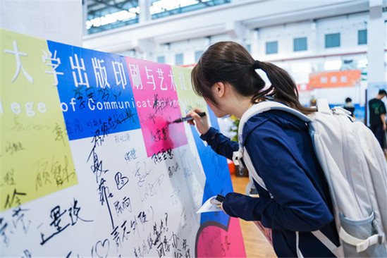 学院IP形象钥匙扣、帆布袋、书签……在上理版艺学院展台上,摆满了为新生准备的小礼物,今年的迎新礼物设计更偏向于动漫风格,跳脱的色彩和富有活力的“涂鸦”展现着版艺学子写下‘艺心为理’的主题,其中的‘艺心’代表了版艺学院,‘理’就是新一届的理宝们,希望我的活泼、热情以及大胆的创造力。“在设计内容上延用版艺学院的IP形象奕奕,她手拿画笔们设计出的小礼物能拉近和新同学们的距离,也表达着对新同学们的美好祝福。”版艺学院学生会创设部部长周懿鋆同学介绍着自己的设计初心。
