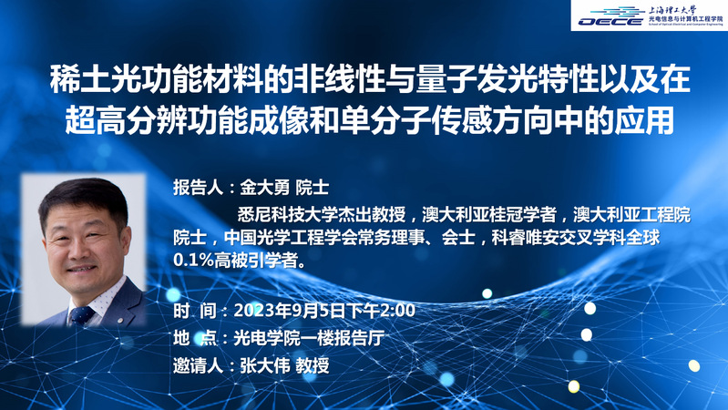 讲座主题:稀土光功能材料的非线性与量子发光特性以及在超高分辨功能成像和单分子传感方向中的应用