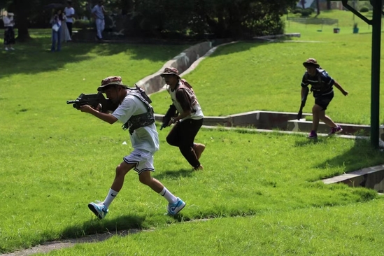 在国防教育中弘扬和培育民族精神,融入民族气节教育,提高少数民族学生的集体责任感和思想道德水平。学院教师带领少数民族预科新生来到了爱国主题教育基地——东方绿舟,通过鼓励学生参与“保家卫国”(真人镭射CS)、“横跨大渡河”(龙舟竞渡)等爱国教育体验项目,丰富少数民族学生的精神文化生活,提升少数民族学生的爱国意识。在“保家卫国”(真人镭射CS)项目中,对抗游戏让学生们感受快乐,来自不同民族的学生在专业人员的讲解下,分为两个阵营。同一阵营的同学们互相配合,共同谋划,沉浸式体验了革命先烈保家卫国的艰辛。划龙舟活动中,每队队员之间密切协作,配合默契,以“舟”会友,促进师生民族交往交流。