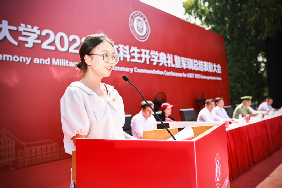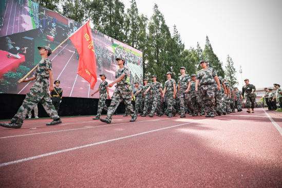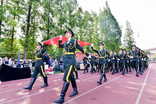 “我们穿越历史,我们走向未来,我们回望一路走来的繁花与荆棘,踏着时代的脚步,以科教兴国为重任,以民族复兴为使命,奔向光明而美好的明天。”最后,全体师生在校歌声中欢送带训教官。
