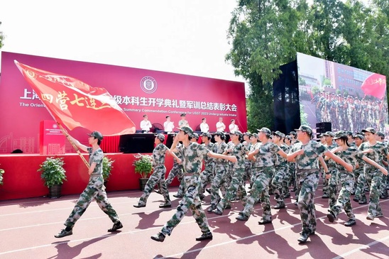 2023级新生军训纪实短片《上理军训十二时辰》拉开了开学典礼的序幕,短片全方位记录了2023年新生军训的精彩瞬间,充分展现了新上理人昂扬向上的精气神,“信义勤爱、思学志远,我们都是新上理人!”嘹亮的口号声激荡在操场上空。