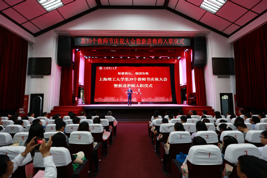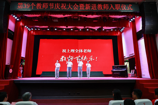 躬耕教坛,强国有我。9月8日下午,学校在大礼堂举行第39个教师节庆祝大会暨新进教师入职仪式。校党委书记王凌宇,校长丁晓东,校党委副书记、副校长盛春,校党委副书记、纪委书记赵宁,副校长蔡永莲,总会计师赵明,副校长张华出席大会。全体中层干部、各单位工会负责人、30年教龄教师、获奖教师、新进教师、各学院教师代表等300余名教师与会。