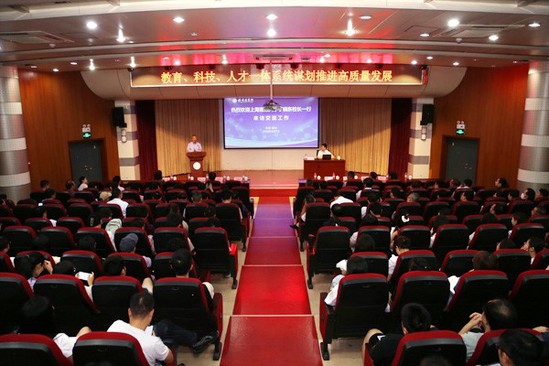 上午,丁晓东应邀作题为“教育、科技、人才一体系统谋划推进高质量发展”的学术报告。蚌埠医学院党委书记蒋家平、院长翁建平、党委副书记姚文兵、副院长姚强、学术副院长周慧芳携相关职能部门、二级学院负责人,各教研室主任、教学管理人员参会聆听。会上,丁晓东简要介绍了永利集团304am官方入口的发展历史与基础,并重点从“以系统观念谋划教育、科技、人才一体化发展”“以‘科教融汇、产教融合’促进教育、科技、人才一体化发展”“以人才队伍建设激活教育、科技、人才一体化发展”三个方面,深入阐述了新时代教育、科技、人才“三位一体”推进的内涵价值、发展路径等。翁建平在总结中表示,报告体现了丰富的管理经验与深厚的学术造诣,各级干部职工应学以致用,树立教育、科技、人才“三位一体”发展思路,推动高校高质量发展。
