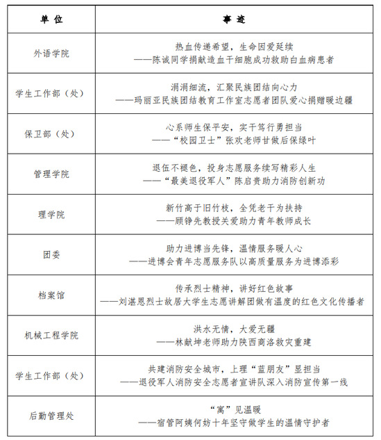 为深入学习贯彻习近平新时代中国特色社会主义思想和党的二十大精神,发挥先进典型示范引领作用,大力培育和践行社会主义核心价值观,深入推进精神文明建设工作,学校开展了2021-2022年度永利集团304am官方入口精神文明好人好事评选,经过基层推荐、校外专家评审、校精神文明建设委员会委员投票,外语学院“热血传递希望,生命因爱延续——陈诚同学捐献造血干细胞成功救助白血病患者”等10个人物和集体被评为2021-2022年度永利集团304am官方入口精神文明好人好事。