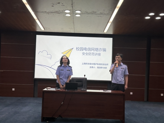 随后,陆警官和张警官做了国家安全教育和人身财产安全教育主题宣讲。两位警官向研究生新生介绍了大学校园内发生的真实案例,同时结合一系列生动的反诈短剧视频,说明当前电信网络诈骗形势、电信网络诈骗的主要手段等有关安全注意事项。培训中,两位警官带领同学们掌握防范新型电信网络诈骗的有关知识,增强自身反诈骗的辨别能力,同时提醒在座新生提高防范意识、随时保持警惕、切勿上当受骗,切实保障自己的人身安全和财产安全。