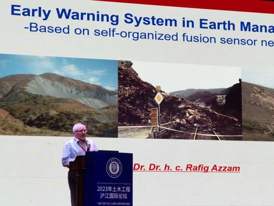 中国科学院院士、同济大学孙钧教授畅想海上交通运输建设的伟大革命,并探讨了真空超导磁浮高速隧道工程的前期工作与运行方案,为如何实现海上交通运输建设提供了启发。日本工程院外籍院士、同济大学汪发武教授分享了2023年土耳其卡赫拉曼马拉什地震造成的损失分析,及其对中国双碳战略实现的启示。澳大利亚技术科学与工程院院士、新南威尔士大学Nasser Khalili教授围绕非饱和土力学展开主旨报告,为非饱和土力学的发展提供新思路。国际工程地质与环境协会前主席、德国亚琛工业大学Rafig Azzam教授围绕基于数据融合和数据挖掘的自组织滑坡监测传感器网络作主旨报告,开发的滑坡预警原型系统为提高滑坡预警准确性提供参考。