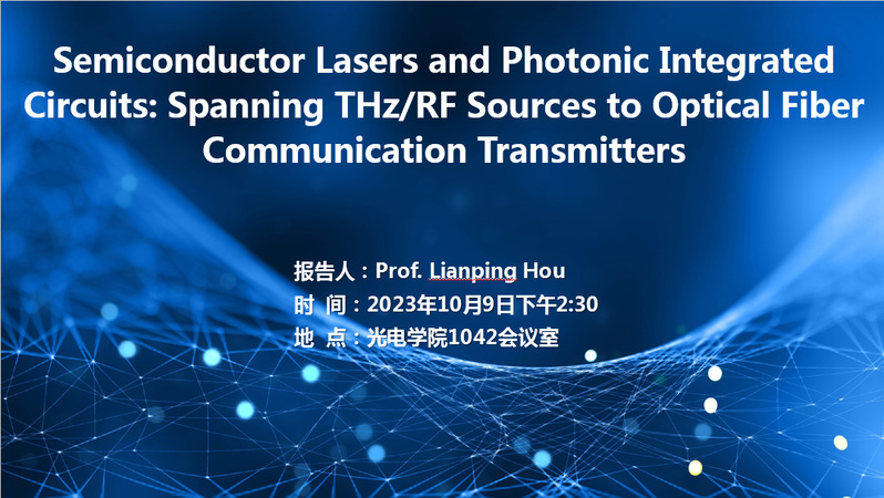 讲座主题:Semiconductor Lasers and Photonic Integrated Circuits: Spanning THz/RF Sources to Optical Fiber Communication Transmitters