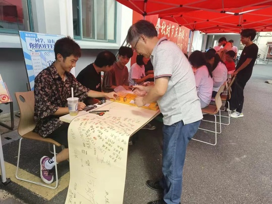 活动期间,院长马军山体验了创意签名、中秋祝福挂牌等活动,并收获了同学们热心赠与的上理特色书签、集章卡等精美礼品。