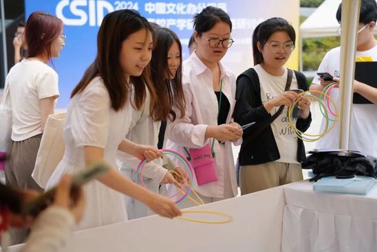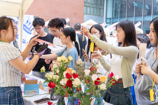 活动中,最热闹的无疑是套圈小游戏,丰富多样的奖品吸引了众多参与者。礼品包括可爱的玩偶、精致的钥匙扣、定制版月饼以及精心设计的文创本子、书签和鼠标垫。此外,文创艺术类集市摊位颇具艺术与人文气息,包含绘画、琉璃、手工、摄影作品等众多艺术家作品,让同学们在繁忙的学业之余,感受艺术的治愈力量。