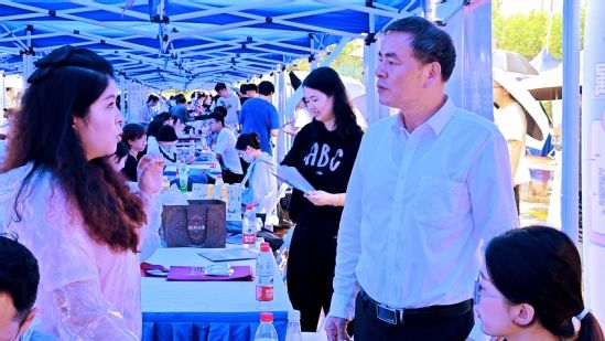 盛春与用人单位、应聘学生深入交流