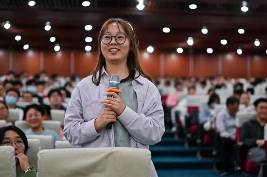 在最后的观众互动环节,现场师生踊跃提问,与嘉宾进行交流讨论。多位同学对阿秒科学的未来发展趋势、我国在此领域的研究现状和布局、阿秒科学的应用价值等方面提出了非常专业的问题。通过专家介绍,同学们也了解到令人振奋的消息:我国正在多处规划建设阿秒激光装置,建成后综合指标有望实现国际领先。三位嘉宾对其中一位同学询问的研一新生阅读科研论文的建议也给予了积极回应。通过此次圆桌论坛,借由诺奖得主的学生、同事和合作者的讲述,让师生们更加了解2023年诺贝尔物理学奖的科学原理和意义,也近距离地感受到诺奖得主们不懈追求科学真理、不断挑战科学极限的人格魅力。