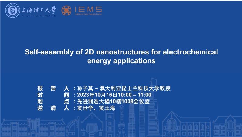 讲座主题:Self-assembly of 2D nanostructures for electrochemical energy applications