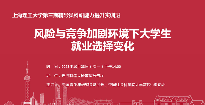 地 点:先进制造大楼辅楼报告厅主讲人:中国青少年研究会副会长、中国社会科学院大学教授 李春玲