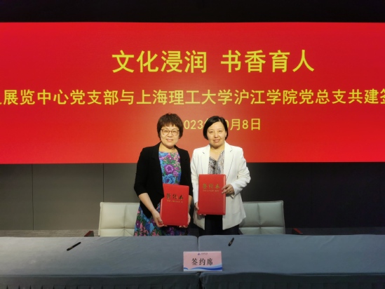 金秋十月,丹桂飘香。为持续深化主题教育成果,推动立德树人育人成效,10月18日,沪江学院党总支全体党员教职工在支部书记陈红的带领下走进上海图书馆(东馆),与上海图书馆会议展览中心党支部共同举行以“文化浸润 书香育人”为主题的共建签约仪式并开展了联组学习。上海图书馆党委书记楼巍,上海图书馆会议展览中心主任、党支部书记吴敏出席会议,签约仪式由上海图书馆会议展览中心副主任、党支部副书记拱佳蔚主持。