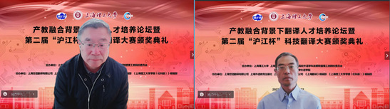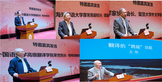 接着,本次大赛组委会主任、大连外国语大学原副校长杨俊峰,上海外国语大学原常务副校长谭晶华,上海翻译家协会会长、复旦大学外文学院魏育青,上海外国语大学高级翻译学院荣誉院长柴明熲和上海海事大学外国语学院原院长、上海市科技翻译学会原会长左飚5位教授分别致辞。