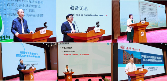 中国译协常务副会长、中国翻译研究院副院长黄友义教授,广东外语外贸大学翻译学研究中心主任赵军峰教授,上海大学国学双语研究院院长赵彦春教授,中国政法大学钱端升讲座教授张法连教授,中国外文局外文出版社英文部副主任刘奎娟,中国海洋大学外国语学院名誉院长杨连瑞教授,中国民航大学外国语学院院长张艳玲教授,永利集团304am官方入口外语学院MTI教育中心主任王勇教授分别以“‘翻译中国’——推动翻译人才培养向高质量发展”“新时代翻译教育中的产教融合:理念、原则与进路”“善译之道:语言的奥秘与翻译的智慧”“如何讲好中国法治故事”“‘三进’工作和翻译人才培养”“翻译专业硕士研究生提高实践能力的困境及对策”“守正创新,和而不同,民航特色翻译人才培养模式的中航大实践”“产教融合背景下翻译硕士核心素养提升途径探索”为题作主旨报告。