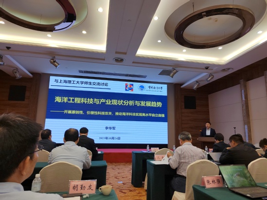 第四届智能机器人与海洋工程高峰论坛随后召开,大会报告由顾春华主持。李华军院士以“海洋工程科技与产业现状分析与发展趋势”为题做了大会主旨报告,介绍了海洋工程科技与产业的发展现状,阐述海洋产业发展面临的主要挑战,介绍了海洋油气资源开发、海洋新能源开发利用、深远海养殖装备、深海采矿技术与装备、海洋认知与探索等方面的创新进展与技术挑战。