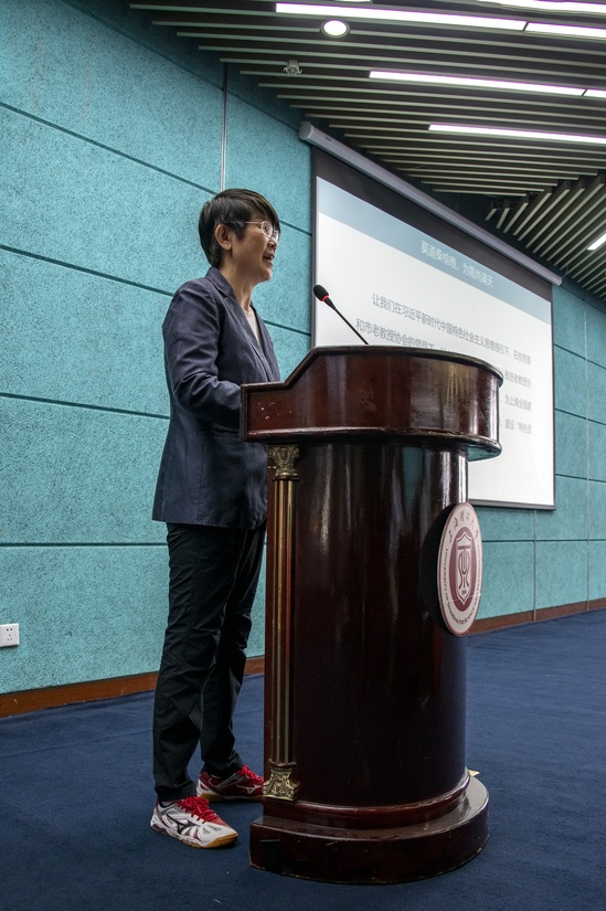 连任会长田蔚风代表新一届理事会讲话,她感谢各位代表的信任,表示深感责任在肩,决心在学校党委和市老教授协会的领导下,继承和发扬协会的优良传统,发挥好协会优势;坚持“三为”服务,团结全体会员,同心同德、乐而有为,努力把老教授之家越建越美好,把协会越办越兴旺,不辜负大家的期望。