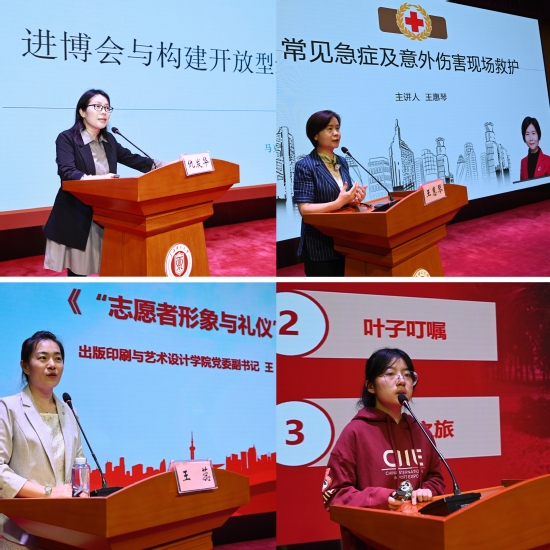出征仪式结束后,校团委围绕“进博会与构建开放型经济新体制”“应急情况处置及个人安全意识培养”“志愿者形象与礼仪培训”“志愿者通用知识培训”四个方面对志愿者进行了专题培训。