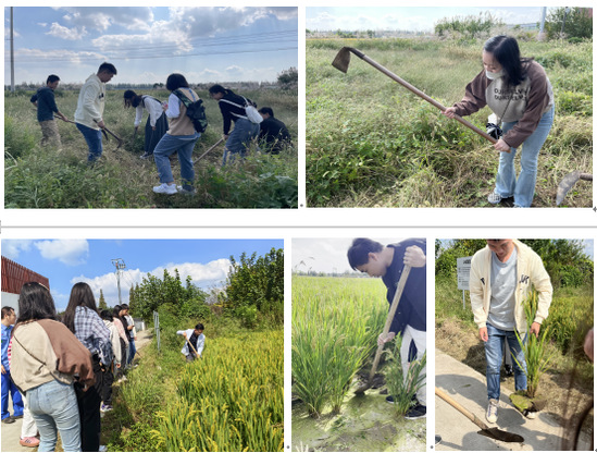 该项目还将生态环保产业与农业生产结合起来,形成绿色循环产业的闭环。下午,同学们在利用农业废弃物厌氧沼液开发高品质液态肥技术种植水稻的试验田,由上海农科院的老师给我们讲解了施用沼液/液态肥对于水稻的生育性状、产量与品质的影响以及适宜液态肥施用量和施用规程,并介绍了如何在采样过程中刨挖水稻。随后,同学们在试验田荒地进行了集体除草活动,为今后进一步拓展有机肥的施用提供改良场地。
