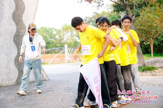 本次运动会比赛项目将定向赛与民族元素相结合,以“比赛”为载体、以“互动”为目的、以“民族融合”为形式,融合探索性、趣味性为一体,设计“文化”“体育”双路线,培养各民族参赛群体的团队协作精神,在运动中提振杨浦各民族群众精气神、提高凝聚力,创新打造民族团结进步新阵地,不断推进新时代民族团结进步事业高质量发展。在比赛过程中,永利官网各民族学生紧密合作,互相配合,展现出了良好的团队精神,在本次运动会中取得体育类比赛第三名的好成绩。