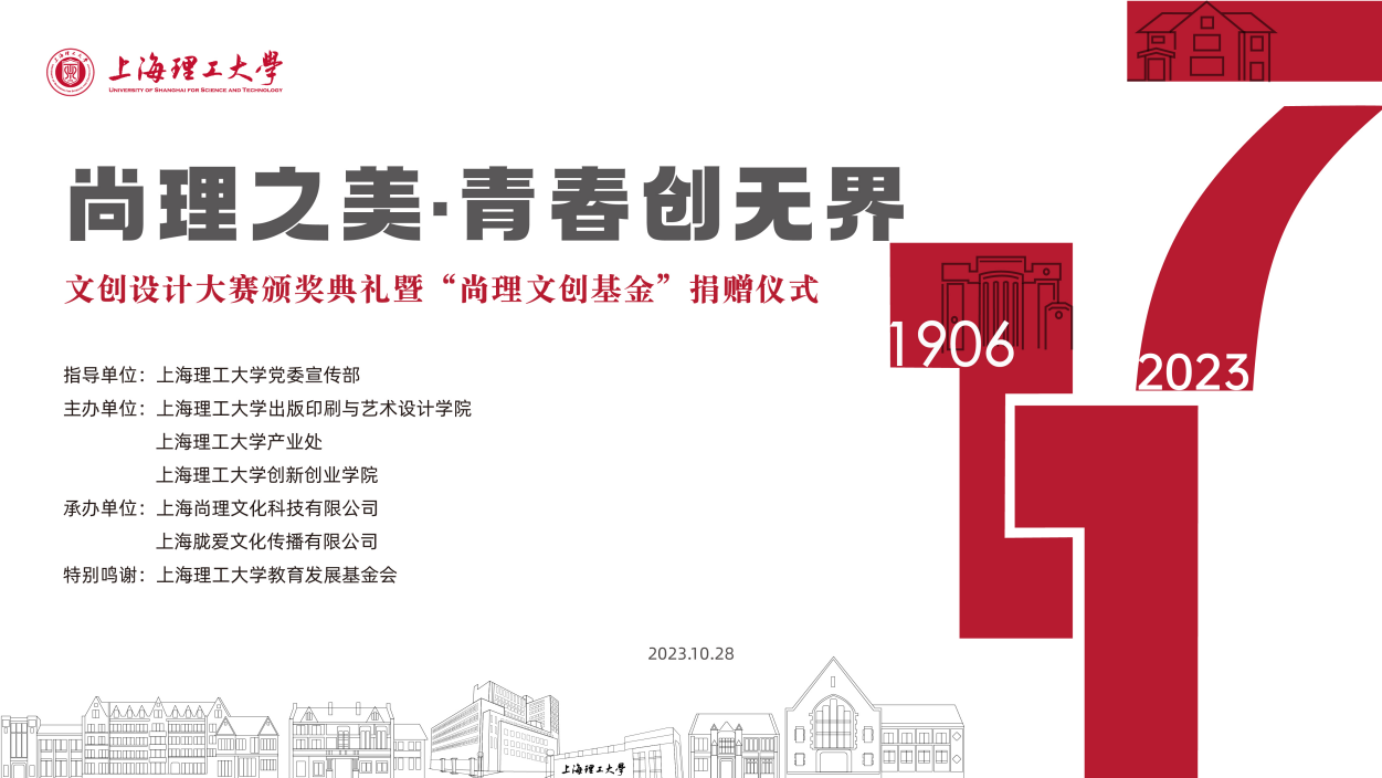10月28日,由党委宣传部指导,出版印刷与艺术设计学院、产业处、创新创业学院共同主办,上海尚理文化科技有限公司、上海胧爱文化传播有限公司承办的“尚理之美·青春创无界”文创设计大赛颁奖典礼暨“尚理文创基金”捐赠仪式举办。校总会计师赵明,党委宣传部部长叶磊,产业处处长张琳,党委宣传部副部长张炜,规划处副处长、校友联络处副处长司徒唯尔,产业处副处长尚娅,版艺学院党委书记张华、院长蔡锦达,党委副书记王蕊,副院长陶海峰及业内专家代表、校友代表出席活动。本次活动由胧爱集团总裁、优秀校友张庭赫主持。