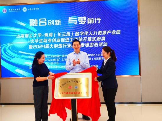 围绕新形势下推进“人才共育、产学共建、资源共享、合作共赢”的理念,进一步服务好校企合作单位选拔青年人才、孵化科技型创业团队,10月27日,永利集团304am官方入口机械工程学院与青浦(长三角)数字化人力资源产业园共建大学生就业创业促进工作站开幕式暨路演活动在青浦(长三角)数字化人力资源产业园区举行。青浦区人社局领导专家、机械工程学院领导老师、学校科技创新团队学生、相关校企合作雇主品牌企业代表等出席开幕式及路演活动。