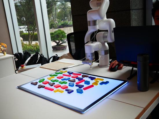 本次路演活动通过学生及科创团队的现场展示,企业人事负责人更直观明晰地了解科创项目原理,在此基础上更迅速地对标到企业项目,也让凝聚师生智慧的科技创新成果得到更好的展示。其中,《俄罗斯方块机器人》项目参照俄罗斯方块游戏的拼接规则,基于ROS框架,融合机器视觉和人工智能算法设计出俄罗斯方块机器人系统,完成将随机散放的俄罗斯方块摆放到拼接盘面中的任务。该作品结合了机器视觉、算法处理与机械臂运动控制等多方面领域,进一步扩大机器人的功能范畴,未来有望在人工智能、机器人技术等领域产业化应用。