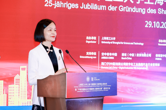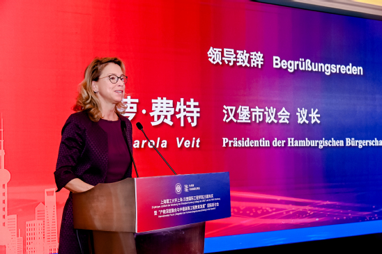 卡萝•费特在致辞中高度赞扬了上海-汉堡国际工程学院25年的办学成果,盛赞上海-汉堡国际工程学院是两国教育合作的典范,表示汉堡市政府将一如既往支持中德学院建设发展。她指出,汉堡和上海的交往一直被视为中德合作的典范,对深化中德合作关系起到了非常重要的作用。作为中德合作的桥梁,中德学院是两市友城项目在教育领域合作的优秀成果,未来在更多领域有无限合作的可能性,并对中德国际学院的未来发展给予美好祝愿。