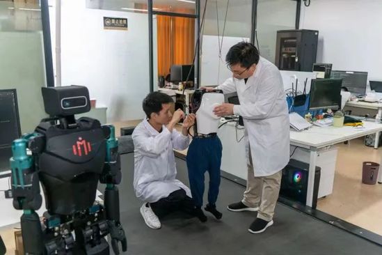 在仿生机器人研究室内的调试系统下,“小贝4.0”的下半身在宽幅跑步机上自然奔走。永利集团304am官方入口机器智能研究院负责人李清都教授介绍,这是研究室经过多次迭代研发出的目前全球唯一膝关节像人一样步态自然的双足人形机器人,而这背后蕴藏着诸多领域的技术攻关。