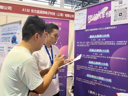 参会企业东方晶源微电子科技(上海)有限公司展位前,工作人员正在忙着接收毕业生简历,他们表示,虽然招聘的学历要求比较高,需要硕士及以上,这场招聘会依旧让他们结识了许多企业发展需要的校园人才,预计可以完成秋招目标。