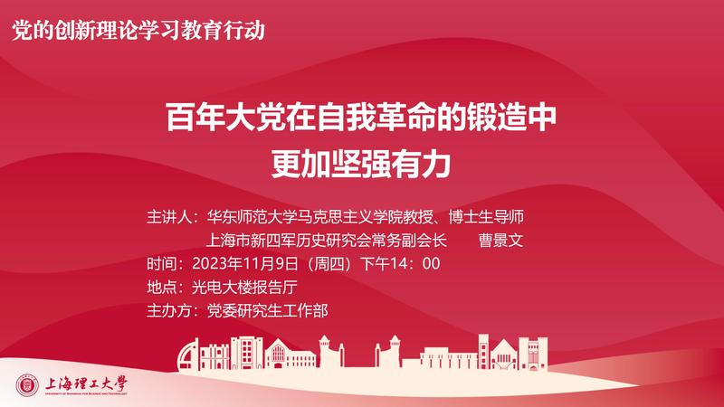 讲座主题:百年大党在自我革命的锻造中更加坚强有力