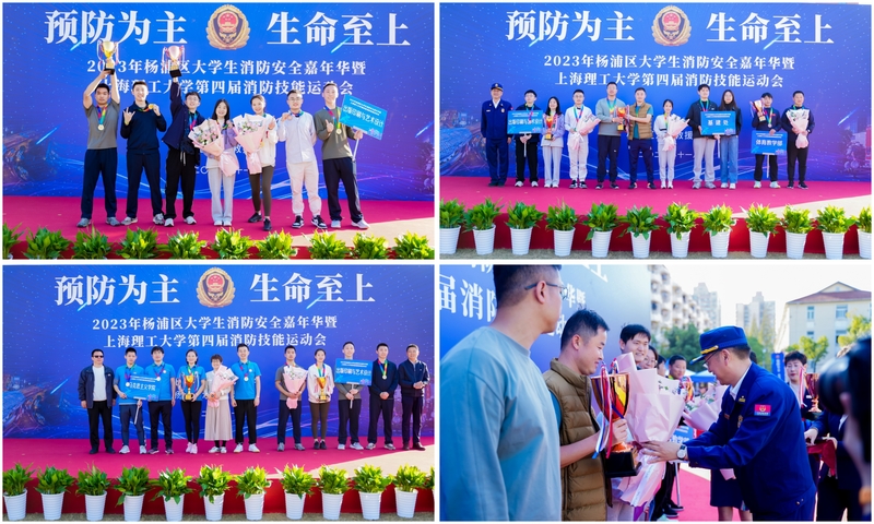11月7日下午,在第32个“119”全国消防宣传日来临之际,“预防为主,生命至上”2023年杨浦区大学生消防安全嘉年华暨永利集团304am官方入口第四届消防技能运动会在永利官网军工路南校区操场举行。本次消防技能运动会旨在深入贯彻落实习近平新时代中国特色社会主义思想和习近平总书记关于安全生产工作的系列重要指示批示精神,全面提升广大师生的消防安全意识和防范与应急能力,进一步营造“人人懂消防,人人会应急”的校园安全文化氛围。上海市消防救援总队新闻宣传处处长姚海荣、上海市教育委员会学校后勤保卫处副处长贺小虎、杨浦区消防救援支队支队长邬继勇及副支队长黄秋浩,校党委副书记、副校长盛春,学校学生处、教师工作部、工会、后勤管理处、体育部、保卫处等部门相关负责人出席活动。杨浦消防救援支队及内江中队官兵到场指导,来自学校各部门、学院的48支师生代表队,8支杨浦高校代表队共300余人参赛。