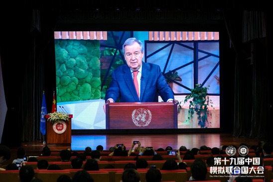 10日的开幕式上,联合国秘书长古特雷斯、外交部国际司参赞陈凯、中国联合国协会副会长兼总干事胡文丽、深圳大学副校长张晓红分别致辞。古特雷斯在视频致辞中表示,世界需要青年人的创造力、勇气和承诺,当下比以往任何时候都更需要青年人的参与和建言。联合国将作为坚定的盟友,呼吁共同努力为所有人建设更加公正、可持续、包容与和平的世界。