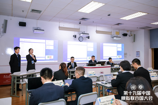 参会学生俞璐表示,“这是我们第一次参加中国模拟联合国大会。从前期在指导老师的带领下查阅背景资料,到参会期间针对议题进行磋商、尝试撰写决议草案等文件,都是一个充满挑战的过程。在这个过程中我锻炼了自己的英文文书写作、演讲协商的能力,也扩展了国际视野,对全球议题有了更深入的了解。大使的精锐点评和来自其他高校的与会者的表现也令我受益匪浅”。