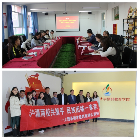 11月6日,基础学院院长马军山带队赴新疆师范大学调研,实地考察少数民族预科生培养教育成效,加强学习互鉴,并就进一步发挥上海新疆双城高校联盟作用,共同服务少数民族预科生教育等内容开展深入交流。预科教育学院党委书记余东、副院长巴特、党政办公室主任叶淑香、学工办主任艾尼瓦尔、学工办副主任沙比娜参加活动。