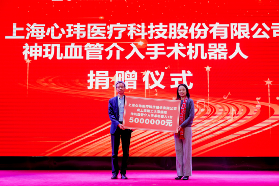 健康学院校友、上海心玮医疗科技股份有限公司董事长王国辉向学校捐赠了一台手术机器人,校友工作联络处副处长司徒唯尔接受捐赠并颁发捐赠证书。王国辉在发言中谈到,作为校友,为学院在大健康领域取得的卓越成就深感骄傲,自己也在努力发挥专业特长为科技创新与行业发展贡献力量。他还结合个人的创业经历鼓励在校生要坚定信念、勇于创新,保持对知识的热爱与追求。