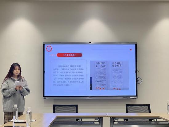 最后,支部党员苏钊凝作了题为“知党史·感党恩·跟党走”的宣讲。苏钊凝通过知党史、感党恩、跟党走三个部分的论述,强调了坚定理想信念、不忘党史的重要性。“落其实者思其树,饮其流者怀其源”,要静心凝神读原著、学原文、悟原理,做到常学常进,常悟常新;要旗帜鲜明讲政治,把坚决做到“两个维护”融入血脉灵魂、落实到修身为政的全过程;要把加强党性修养作为终身课题,坚决杜绝思想上的跑冒滴漏、行为上的出轨越界,坚决抵制码头文化、圈子文化、好人主义,始终做政治上的明白人、老实人,保持共产党人的初心不改、本色不变。