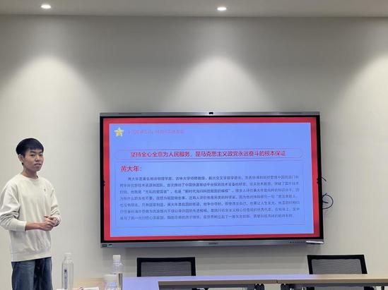 随后,支部积极分子胡星晔以“锤炼过硬本领,坚定党员信念”为主题进行宣讲。她将自身理论认知与实例相结合,强调了锤炼本领要在讲政治、有政德中“守初心”;要在强素质、有能力中“担使命”;要在敢斗争、会斗争中“找差距”;要在求实效、重实绩中“抓落实”。每一名共产党员都要常怀忧党之心、为党之责、强党之志,时刻保持“朝受命、夕饮冰,昼无为、夜难寐”的状态,紧密团结在以习近平同志为核心的党中央周围,并且以习近平新时代中国特色社会主义思想为指引,与人民同呼吸、共命运、心连心,同人民想在一起、干在一起,向历史、向人民交出新的更加优异的答卷。