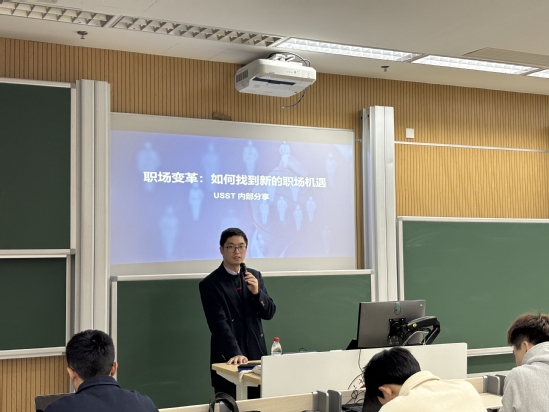 随后,龚飞以“卷”这个词为切入点,结合职业规划大赛就业赛道,对与会同学进行指导,通过讲解自身的工作经历,分析当代职场变革,向应届学生分享如何把握就业“黄金期”,抓住就业机会。讲解过程中,龚飞与现场同学积极互动,通过分析应届学生职场基本素养及能力,表示学生应不断提升自我学习能力和自我驱动能力。