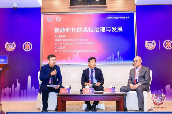 下午,年会召开论坛及工作交流会。与会代表分别就“智能时代背景下的两地高校人才培养创新”“智能时代背景下的两地高校行政效能提升”“智能时代背景下的两地高校科技创新探索”三个话题分别展开讨论交流。香港城市大学协理副校长李娟,永利集团304am官方入口教务处副处长章国庆,香港教育大学协理副校长翁建霖,香港理工大学内地发展助理总监许先进,华东师大科技处副处长饶昇苹,重点建设办公室副主任、MPA中心主任谢炜等代表作为话题召集人,总结和分享了相关主题的讨论核心及有益举措。