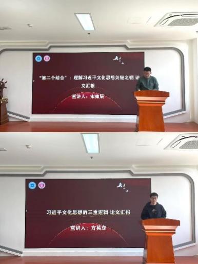 西安邮电大学青马研习社宋帅辰、方英东分别带来“‘第二个结合’:理解习近平文化思想关键之钥”“习近平文化思想的三重逻辑”论文分享汇报。