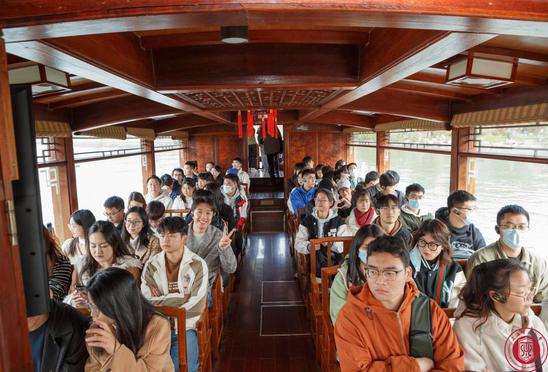 此次活动主要围绕“红船精神”展开。上午,104名学生乘坐大巴前往嘉兴南湖,到达后便乘船游览南湖,两岸枫叶尽染,秋色迷人。到达对岸后,大家便开始参观各个红色景点。首先,大家瞻仰了南湖红船,红船上的整体景观数字展示厅,通过现代科技手段,生动展现了中国共产党的光辉历程和南湖的丰富文化内涵。接下来,同学们沿路参观了钓鳌矶、烟雨楼、观音阁、清晖堂等景点,在讲解员的讲解下,同学们学到了很多历史知识。