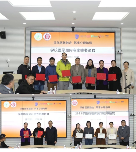 随后,与会各嘉宾从医教资源、队伍建设、合作展望等方面进行了充分交流,推动杨浦高校心理健康事业进入新阶段。签约仪式上,还颁发了学校心理健康医学顾问聘书、学校老师参与临床见习证书以及临床见习优秀带教医师证书。
