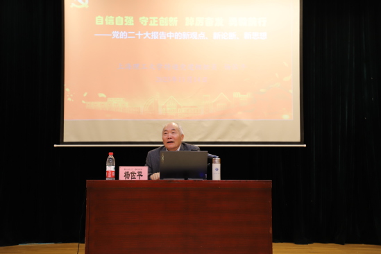 杨佐平为学员作题为“自信自强 守正创新 踔厉奋发 勇毅前行——党的二十大报告中的新观点、新论断、新思想”的专题辅导报告。他围绕党的二十大的一个“新”,结合自身的求学之路和当下的国家实际,从生态文明、国家安全、政治制度等角度展开,带领学员回顾“两个一百年”奋斗目标和“三个务必”的内涵,要求广大青年要坚定不移听党话、跟党走,怀抱梦想又脚踏实地,敢想敢为又善作善成,不断提升个人的素养和能力,用实际行动做推进中国特色社会主义建设的栋梁之材。
