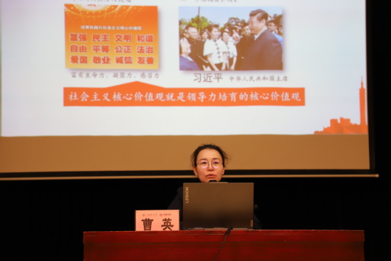 曹英作题为“学党章,努力成为合格的大学生党员”的专题报告。她紧紧围绕党章,从成为合格大学生党员基本条件的5个方面展开,通过比较中国共产党和其他政党的不同之处,加深学员对中国共产党的认识,明确只有坚定信仰才能更好地树立入党动机,才能更好地为人民服务。曹老师指出,要以学习党章为指引,脚踏实地做学问,不断丰富自己的知识,在新征程上连续奋斗,展现新时代青年党员的风貌。
