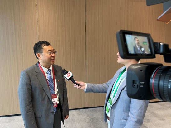 樊重俊在会议期间接受记者采访