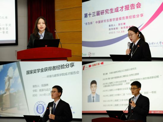为深入学习贯彻党的二十大精神,发挥永利官网优秀研究生的榜样和示范作用,12月8日下午,由党委研究生工作部主办、环境与建筑学院承办的“秋炫沪江”研究生科技文化节系列活动之第十三届研究生成才报告会在光电学院报告厅举行。报告会邀请了来自能动、管理、环建和外语学院的四位优秀研究生,分享他们在党建、科研、创新创业、社会服务和实践等方面的典型经验,报告会吸引了来自各学院的近百名研究生代表与会学习交流。党委研究生工作部部长彭宗祥、环建学院党委副书记曹桂馥出席会议,会议由学院2023级研究生鲁振杰主持。